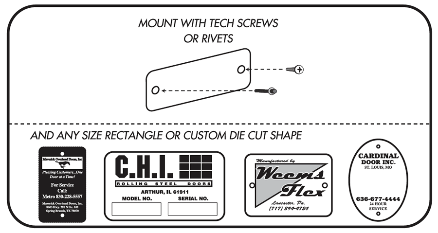 Our aluminum door signs are engineered for maximum outdoor durability. We start with .020 aluminum that is coated on both sides with a bright white. We then screen print your design using colors with a highly pigmented U.V. ink. Your sign is then laminated with high gloss lamination for a brilliant shine and a scratch proof life.