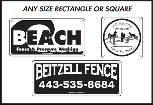 Our Fence Signs are screen printed with the highest quality U.V. inks. They are laminated with a high gloss mylar for outdoor durability.